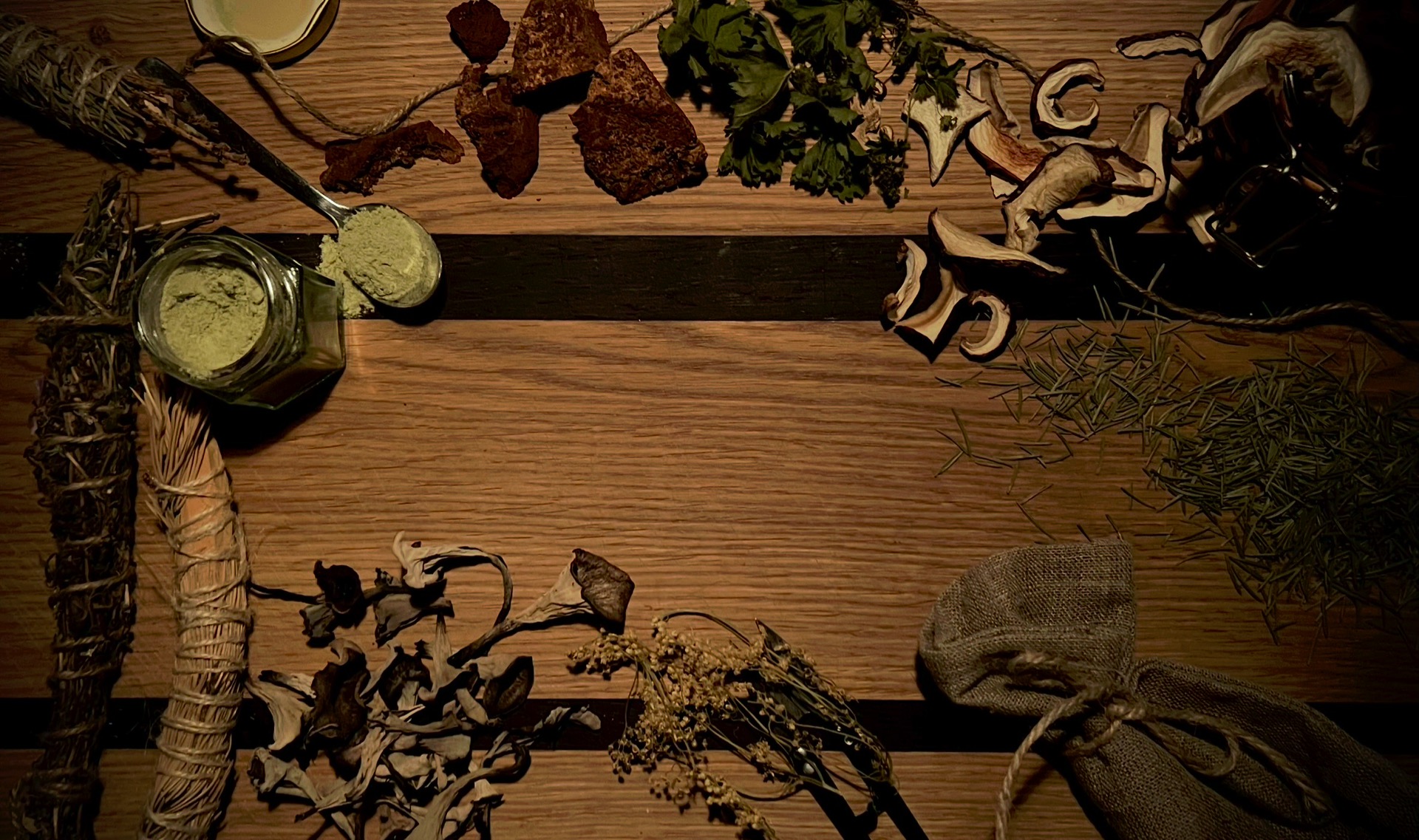 Työpajassa pääset tutustumaan kuivattuihin sieniin ja villiyrtteihin sekä valmistamaan omat metsän maku -tuotteesi: mausteseoksen, suolan ja teeseoksen tai jalkakylpyseoksen.